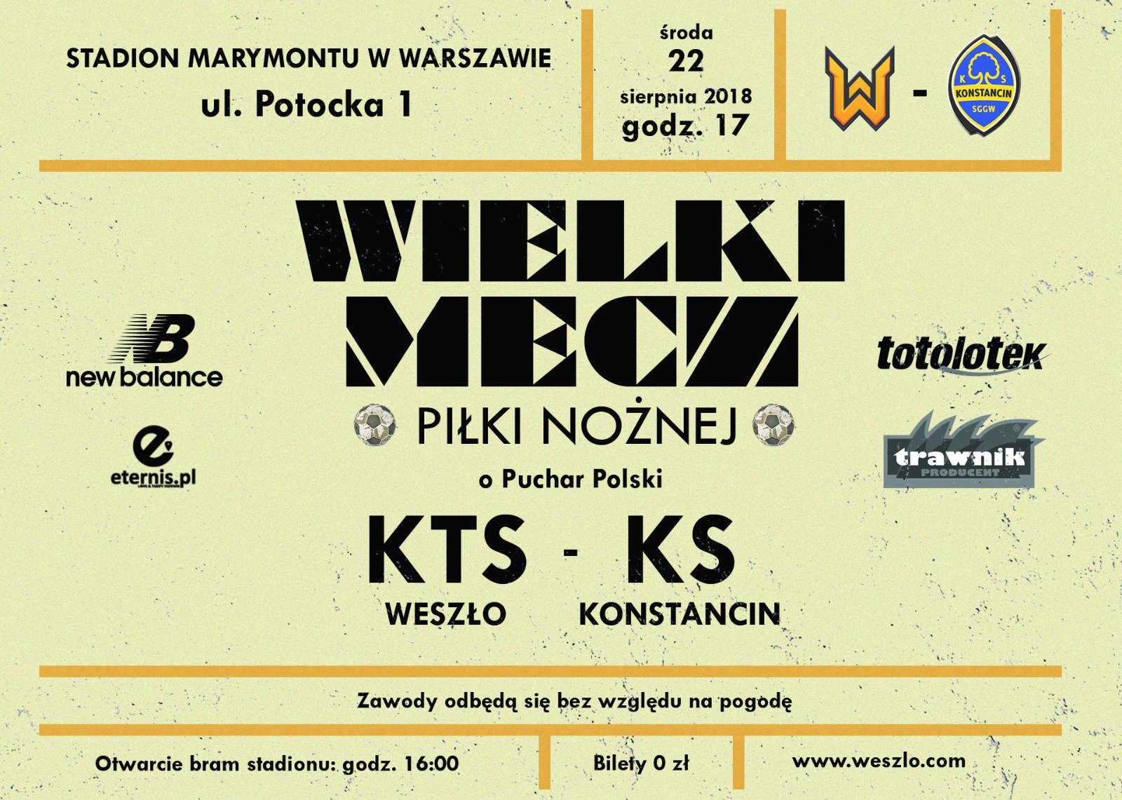 Już dziś o godzinie 17.00, na stadionie OSiR Żoliborz przy Potockiej 1, Klub Towarzysko-Sportowy Weszło rozegra swój pierwszy oficjalny mecz o punkty. Rywalem w drugiej rundzie okręgowego Pucharu Polski (w pierwszej walkowera oddał OKS Otwock) będzie KS Konstancin, a więc zespół warszawskiej okręgówki.
